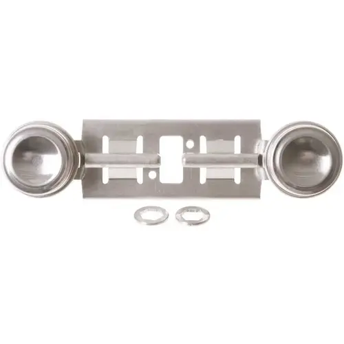 This double burner assembly comes with flame spreader heads, lighter tubes, and a mounting bracket. It directs gas to the front and rear surface burners. This part # is common for many GE, Hotpoint, and Kenmore models.