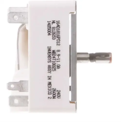 The infinite switch controls the large surface element. It will turn the element on and off and allow you to change the heat intensity. The knob to adjust the heat setting mounts onto the shaft of this switch.