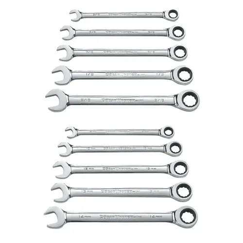 GEARWRENCH 9418 10 Pc Combination Ratcheting Wrench Sets, 12 Point, SAE/Metric