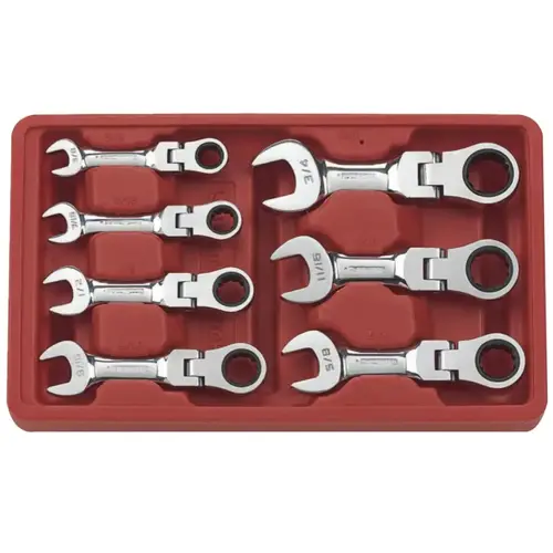 7 Pc. Stubby Flex Combination Ratcheting Wrench Sets, Inch