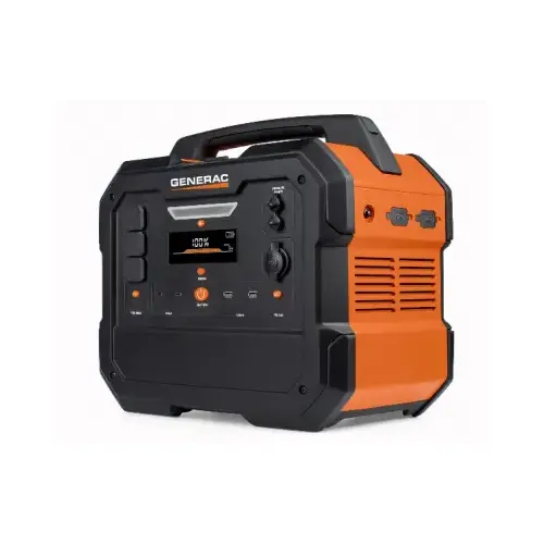 GENERAC Power Station, 1600 W Wattage, 3200 W Output, 120 VAC, 13.3 A, 60 Hz Frequency, 1 ph, Solar Fuel, NEMA 5-15R Enclosure, MPPT Control, Dimensions: 16.8 in L x 10.4 in W x 15.1 in H, Includes: AC Charge Cord, Car Charger Cord and Solar Adapter Cord
