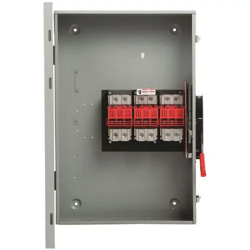 General Duty Safety Switches are intended for applications where reliable performance and continuity of service are needed, but where duty requirements are not severe and usual service conditions prevail. These switches are intended for use primarily with supply circuits rated 240-Volt AC or less where the available fault current is less than 100,000 Amp when used with Class R or T fuses or 10,000 Amp max when used with Class H fuses.