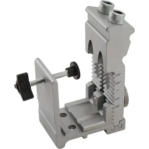 The Adjustable Pocket Hole Jig Kit enables you to produce strong and professional flush, corner and angle pocket hole joints. Easily adjustable for wood thicknesses up to 1-1/2 In. Jig can be separated from base to create horizontal and hard to reach joints (such as in corners). This pocket hole jig kit is perfect for woodworkers and DIYers. All in one system includes jig, 3/8 In. step drill bit, stop collar, hex wrench, square drive bit and 48 fine and coarse thread pocket hole screws.