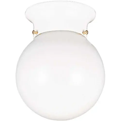 Generation Lighting Tomkin One-Light Flush-Mount Ceiling Fixture. Featured In The Decorative Tomkin Collection. Uses 1 A19 Medium 60 Watt Light Bulb. Smooth White Glass Diffuser. Bulb Not Included. Safety Listed For Damp Locations. Meets Title 24 Energy Efficiency Standards. Use With One A-Line Medium 60 Watt Light Bulb. Mfg #5366-15