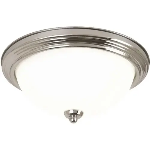 Generation Lighting Traditional Chrome Two Light Ceiling Flush Mount. Featured In The Decorative Ceiling Flush Mount Collection. Uses 2 A19 Medium 60 Watt Light Bulbs. Satin Etched Glass Diffuser. Easily Converts To Led With Optional Replacement Lamps. Meets Title 24 Energy Efficiency Standards. Title 24 Compliant If Used With Joint Appendix (Ja8) Approved Light Bulbs Listed In The California Energy Commission Appliance Database. Ul Listed For Damp Locations. A Great Choice For Your Do-It-Yourself Project. Decorative Chrome Finish To Accent And Brighten Your Room. The Preferred Brand Choice Of Builders And Electricians. Mfg #77064-05