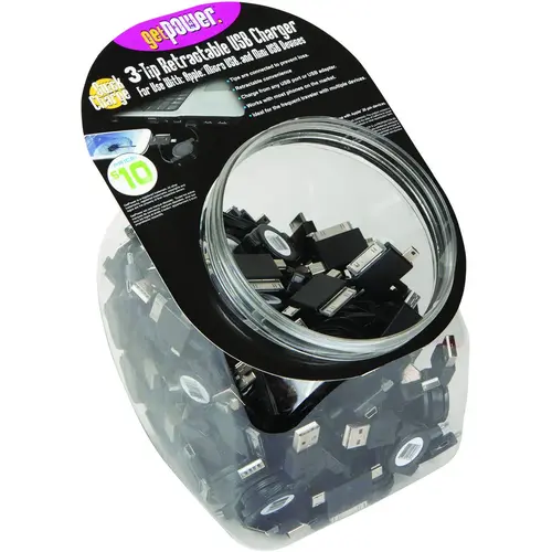 Includes: (50) USB Charge/Sync Cables in Various Colors English and French Display Toppers