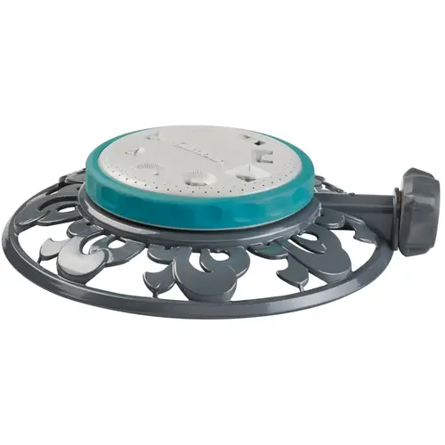 Gilmour Lawn Sprinkler, Operating Range: 35 ft, Spray Pattern: Circular, Metal, Gray