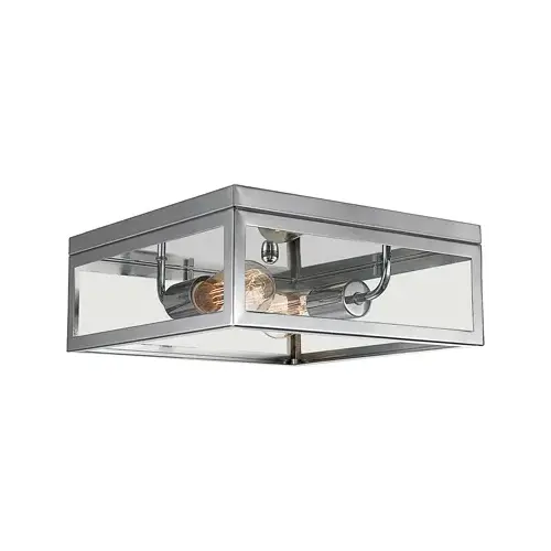 Memphis Collection, 2 Light, Chrome Finish, Flush Mount Fixture, Glass Panes, Uses Two 60W Medium Base Bulbs, Not Included, 13"W x 5.12"H.