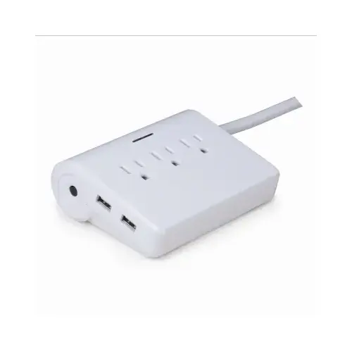 White, 3 Outlet Power Strip, 14/3, SJT, 4 USB Ports, 2 USB On Each Side, 4.8A Combined, 450 Joules Surge Protection, LED Surge Indicator Light, 6' Cord, Reset Button.