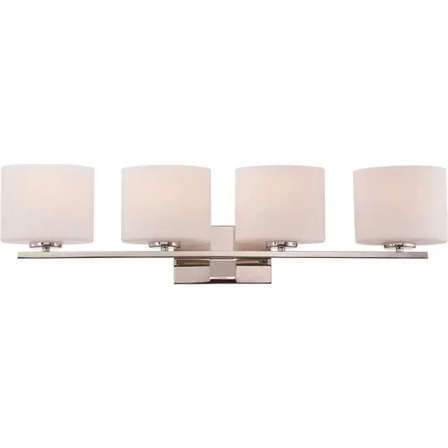 Beautifully finished in polished nickel and accented by opal etched glass, the Braydon 4-Light Polished Nickel Vanity offers timeless styling for many of today's popular design trends. A row of classic shades brightly illuminates your bathroom vanity, creating a versatile centerpiece that coordinates with a variety of decor. Installation is easy with all necessary hardware included.