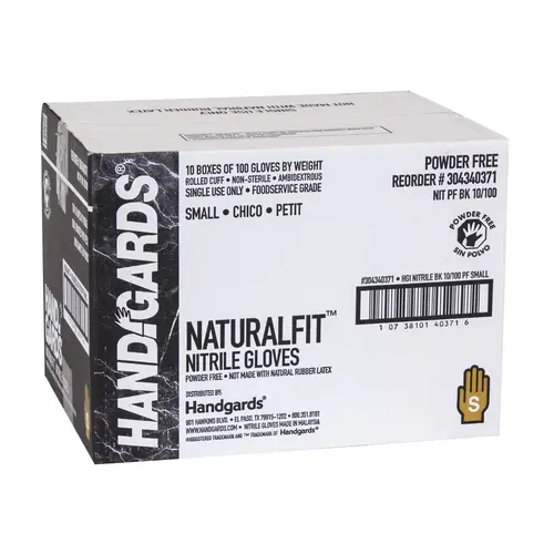 Handgards NaturalFit Nitrile Powder Free Black Small Glove 100 per Pack - 10 per Case