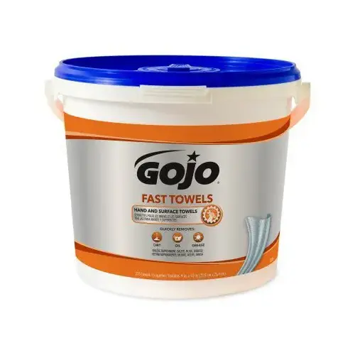 GOJO fast towels are large, high strength hand and surface cleaning towels. Each fast towel is pre-moistened with a GOJO heavy-duty formula that cleans hands, arms, tools and surfaces. Use GOJO fast towels in service vehicles, on workbenches, at job sites or wherever water is not available.