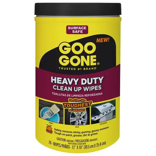 Goo Gone heavy-duty wipes is a heavy-duty wipe that can tackle the biggest, toughest messes. Includes 70 wipes specifically formulated to be tough on paint, grease, ink, grime, dirt and more.