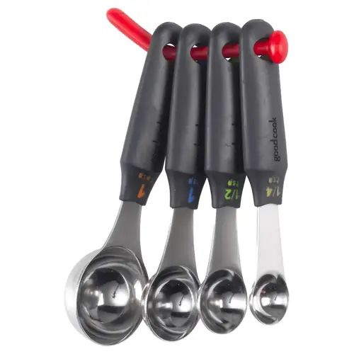 Goodcook Measuring Spoon Set, Non-Slip, Soft Grip Handle, Stainless Steel, Silver, Includes: 1/4 Teaspoon, 1/2 Teaspoon, 1 Teaspoon, 1 Tablespoon