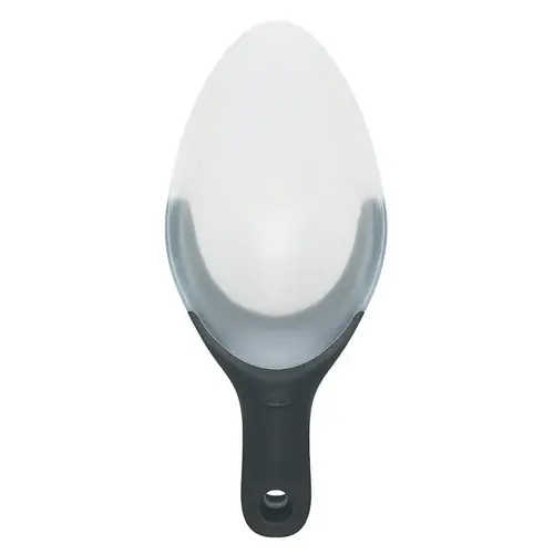 A versatile utensil that fits neatly into tight spaces. Our handy scoop is ideal for transporting everything from ice to flour, cereal and more. The compact head fits easily into all sorts of canisters and bins. Flexible for easy funneling into smaller containers. Stays comfortable to the touch even after sitting in the freezer.