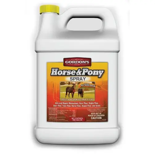 Gentle formula contains sunscreen. Oil-based pyrethrin/permethrin blend for insect control of gnats, mosquitoes, horn flies, stable flies, deer flies, face flies and horse flies on horses and ponies. Use as a spray or wipe on. Requires just a fine mist for ideal residual effect.