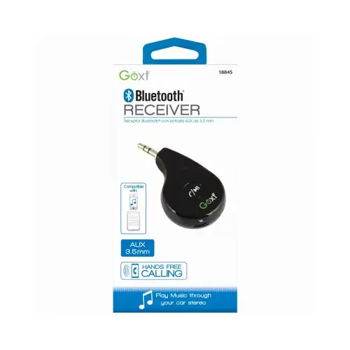 GoXT Bluetooth Receiver, play music wirelessly through your vehicles speakers using a Bluetooth receiver, compatible with any Bluetooth device such as iPods, iPads and Smartphones, easily plug into your vehicle's AUX port to connect your device through Bluetooth, Includes a rechargeable battery that is compatible with Micro USB