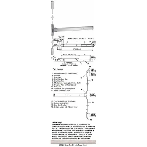 Panic Rated 36" Narrow Stile