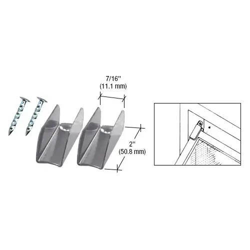Used to support upper part of screen frame, the CRL Jiffy Hanger swivels out from the window frame to permit easy installation or removal of screen. One pair of hangers is needed for each screen. For small jobs carded packages containing 6 hangers and nails are available. Minimum order 100 pairs (2 hangers and 2 nails).