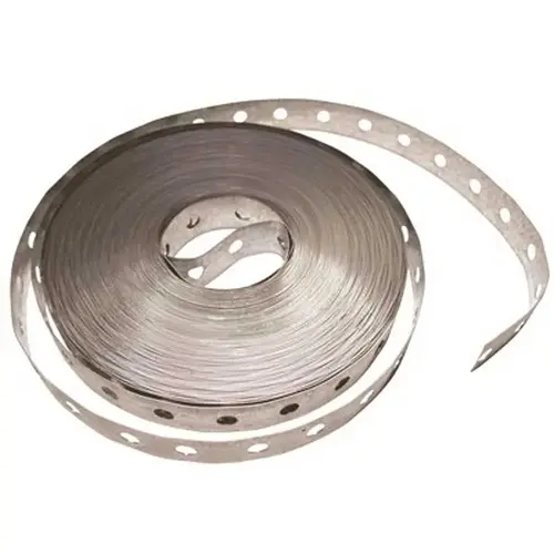 Support HVAC or pipe runs with perforated metal hanger strap. One can hang insulated flexible duct, round pipe or rectangular duct with this perforated strapping. This durable, galvanized steel strap is easy to install and is 100 ft. L. Easily cut to desired length for a variety of plumbing and HVAC applications.