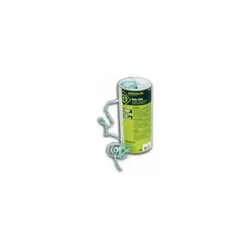 Poly line, 210 lb. average breaking strength, can be blown into conduit and then used to pull in a larger pulling rope or it can be used directly to pull in smaller wires. Can be used directly from the container with power fishing systems. Resists tangling when dispensing. Prepunched hole for dispensing the line. Rot and mildew-resistant.