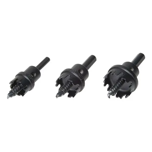 (1) 7/8" cutter, (1) 1-1/8" cutter, (1) 1-3/8" cutter, (1) pilot drill and (1) hex wrench