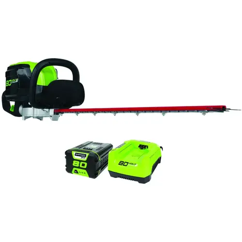 Greenworks Hedge Trimmer, Lithium-Ion Battery, 80 V Battery, Cutting Capacity: 3/4 in, 3600 rpm Speed, 26 in L Blade, Steel Blade, Rotatable Handle, Includes: (1) 80 V 2 Ah Lithium-Ion Battery and Charger