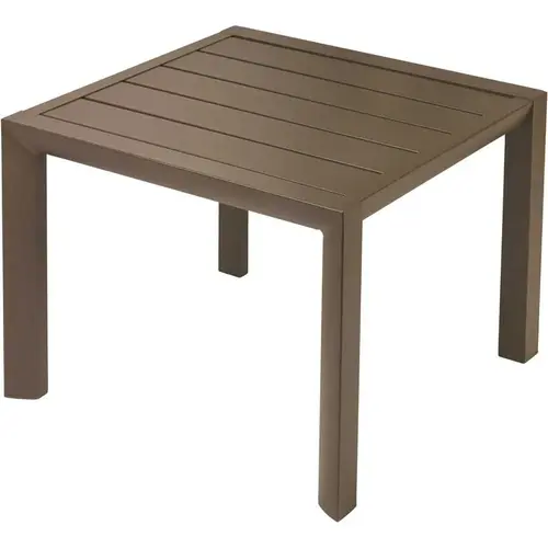 GROSFILLEX Sunset Low Table, Fusion Bronze. Made Of Lacquered Aluminum For Years Of Worry-Free Use. Colors match the Sunset Chaise, Chair, Barstool and Conversational Deep Seating frames. 1 year warranty. Open slat tabletop. Easy assembly required. UV Resistant. Mfg #US040599