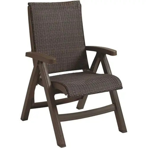 Grosfillex Java wicker armchair is beautifully designed in an easy-to-maintain resin wicker construction. Enjoy fine dining or a drink by the pool with this commercially rated resin chair in a bronze mist finish. Includes footpads to protect against wear and tear on hard surfaces.