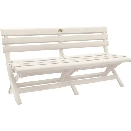 GROSFILLEX Westport Folding Bench White. Designed Using Mineral Polymer Composite (Mpc), A High-Grade Polymer Formula With A Dramatic Wood-Like Finish. Weight capacity of 900+ lbs. Seats up to 3 people. Can be handled easily. Seat and back curvature to maximize comfort. Realistic wood texture. ASTM-B Tested. 3-year warranty. Folds for optimal storage during the offseason and for moving indoors and out. Strong and sturdy 38lbs resin bench. Mfg #US449004