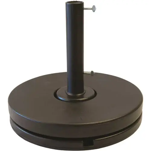 The 70 lbs. umbrella base is a cement filled resin base and is made to be bolted to your deck surface or be used as a free standing base. The longer reinforced stem with 2 thumb screws allows for the use of a range of umbrella poles from 1-1/2 in. to 2 in. UV protected and easy to maintain. Be sure to measure where you will be using your base to ensure fit.