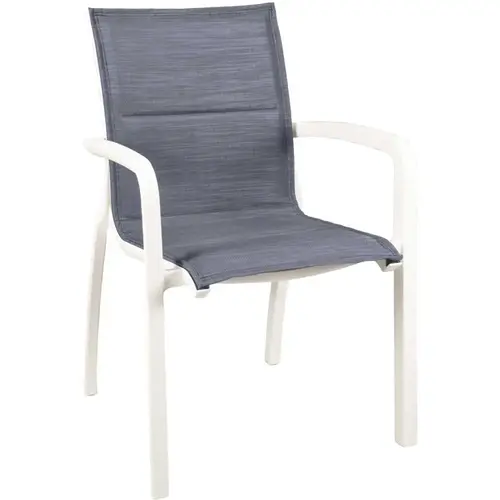 GROSFILLEX Sunset Comfort Armchair Madras Blue/ GW. llex Proprietary Technopolymer With Air Molding Technology (Amt) To Provide Weather Resistance And Durability With The Strength Of Metal. . Passes ASTM Class B standard for safe commercial outdoor use. Stacks for easy storage. Contemporary cast metal design without the cost. Rust and U.V. resistant - easy to clean and maintain. Microban anti-microbial treatment slings to resist mold & mildew. Nylon foot pads for wear resistance on hard deck surfaces. 3 year warranty. Mfg #UT090096