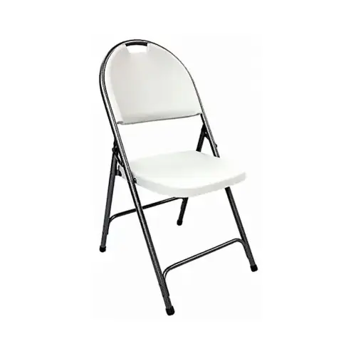 White, Folding Chair With Durable Powder Coated Steel Frame, Weather Resistant, Polypropylene Injection Molded White Seat & Back, Front & Rear Riveted Cross Braces, Folds For Easy Storage, Resin Seating Surfaces Won't Stain, Chip Or Peel, Non-Marking Plastic Foot Caps, Weight Capacity: 225 LB.