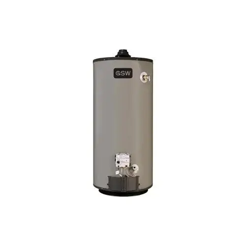 GSW Water Heater, Outlet Connection Size: 1/4 in, BTU Rating: 40,000 Btu, Gas Type: Natural Gas, Tank Capacity: 151 L, 150 psi, Vent Type: Atmospheric, Dimensions: 22 in W x 47-3/4 in H