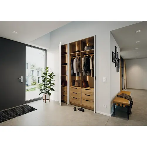 Please order door fixing set separately. For door height 1500–1800 mm: Please use 2 hinges with soft closing mechanism + 2 hinges without soft closing mechanism. For door height 1801–2300 mm: Please use 3 hinges with soft closing mechanism + 2 hinges without soft closing mechanism.