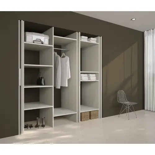 1 scissor assembly with two guides 1 spacer profile 1 door stopper with clip-in stopper 3 alternative profiles and brushes 1 pair of cover caps 1 end position damper 1 self closing mechanism for door 1 soft stopper bracket 1 upright with 2 play-free guides 3 concealed hinges 2 guide tracks Mounting instructions