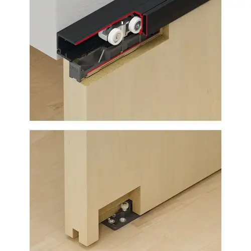 2 running gears with suspension screw and nut, M8 2 support profiles 2 cover caps 2 track stopper with retaining spring 1 floor guide, adjustable 1 set of fixing screws