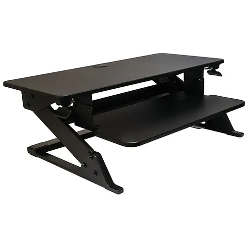 The compact footprint easily fits onto a 24” deep desk