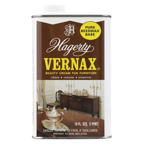 Hagerty Vernax Furniture Polish cleans, restores, and preserves wood and leather. Vegetable oil and beeswax preservatives restore the natural oils and moisture that are depleted out of wood furniture by heating and air conditioning. Used in museums, galleries, and antique stores. Keeps leathers clean and supple.