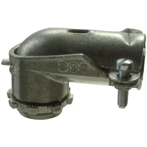 Zinc die-cast. In a dry location, use to connect flexible metallic conduit (Greenfield or BX) to a steel outlet box or other metal enclosure.
