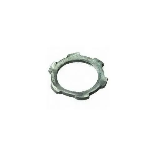 Steel with zinc plating. Indoor or outdoor applications. Use to secure Rigid or IMC conduit or various threaded fittings to a steel outlet box or other metal enclosure.