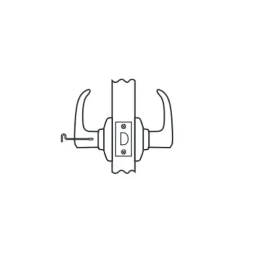 Outside knob/lever locked by pushbutton on inside knob/lever. Rotating inside knob/lever or closing door releases/unlocks button. Emergency release in outside knob/lever.