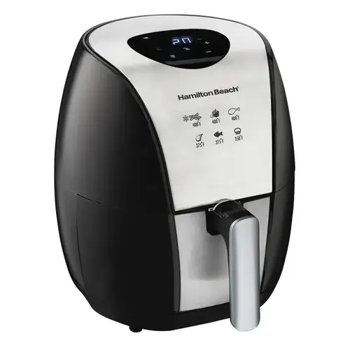 Hamilton Beach Air Fryer, 3.2 L, Wattage Rating: 1500 W, Temperature Rating: 400 deg F, Display Type: Digital, Removable Fry Basket: Yes, Black/Silver, Dimensions: 12.6 in H x 11.22 in W x 14.17 in D