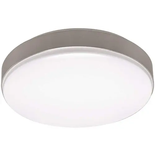 Hampton Bay's 15 in. Round LED Flush Mount Ceiling Light with Wide Brushed Nickel Border features a cross between Modern style and Industrial finish showcasing the sleek and current style of contemporary decor. It is designed to provide seamless elegance along with assuring a reliable, secure and enduring performance. It emits 1550 Lumens of brightness while reducing energy consumption by as much as 79% compared to conventional lighting units. Lasting over 10-times longer with premium LED technology, this is a high quality replacement for 100-Watt incandescent light. This fixture produces 22-Watt of energy illuminating 4000K Bright White color temperature and is dimmable. Ideal for kitchen, laundry room, garages, basements, hallways, dressing rooms, retail stores, waiting rooms or offices.