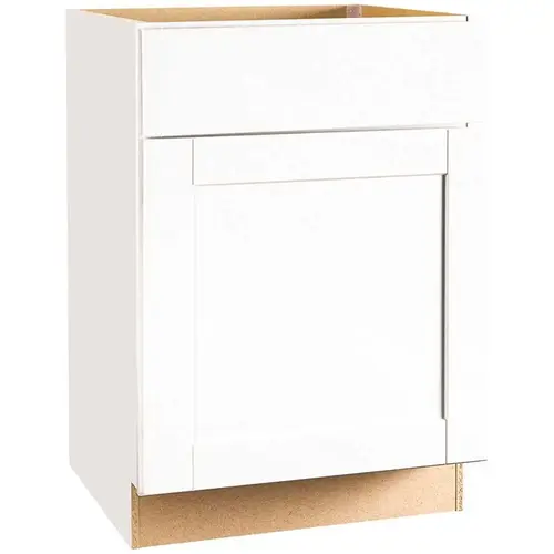 Hampton Bay KB24-SSW Shaker Satin White Stock Assembled Base Kitchen Cabinet with Ball-Bearing Drawer Glides (24 in. x 34.5 in. x 24 in.)