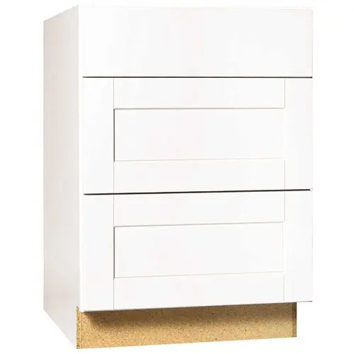 The furniture-quality finish on the Hampton Bay Base Cabinet adds warmth and beauty to your kitchen design. The cabinet has three 4-sided hardwood drawer boxes that open easily on smooth ball-bearing glides, giving you easy access to a convenient storage space. The cabinet is preassembled for hassle-free installation.
