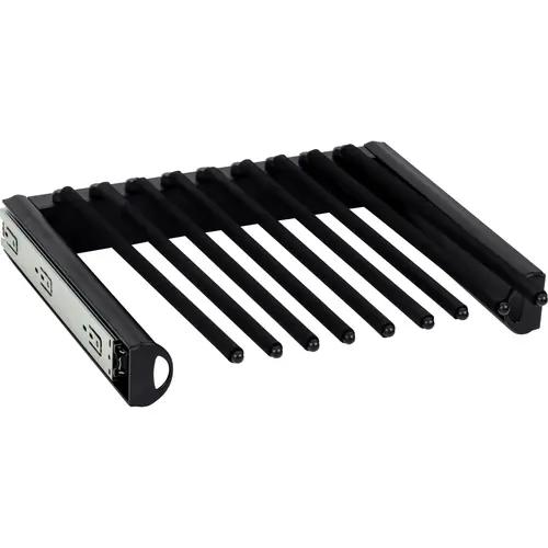 Add convenience and sophistication to your closet with a luxurious Pant Rack from Hardware Resources. Designed for an 18" closet opening, this pant rack holds 9 pairs of pants crease-free thanks to the thick foam covering on the individual hangers. This pant rack is easy to install and has 3/4" width adjustment that is easily accessible from the front of the unit. 32 mm Quick-Brac mounting bracket ensures easy installation using a 32 mm hole system. Each arm is secured in the unit, preventing free-swinging like in other pant racks.