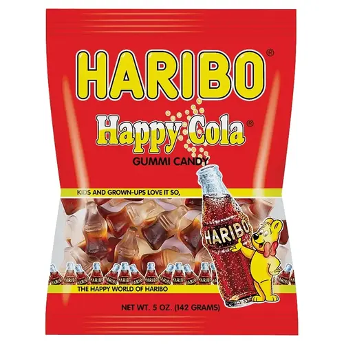 Gummi bottles that look like real pop bottles and have an bubbly cola flavor.