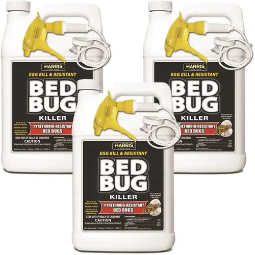 Harris Egg Kill and Resistant Bed Bug Killer, 1 Gal. Ready-to-use (3 Pack) kills bed bugs that have become resistant to pyrethroids and their eggs. Treat mattress seams and folds, box springs, furniture, closets, carpet edges and baseboards. Also treats luggage.