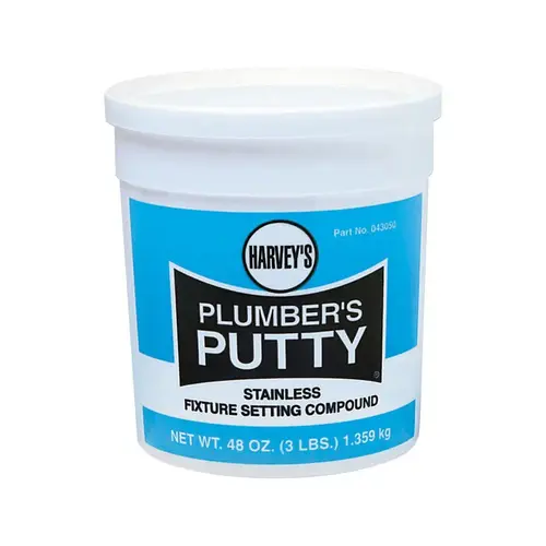 Harvey plumber's putty is an easy-to-use and long-lasting putty widely used for setting bowls, rims, strainers and faucets. It remains flexible and will not harden, shrink, crack or crumble even if the cup is left open.